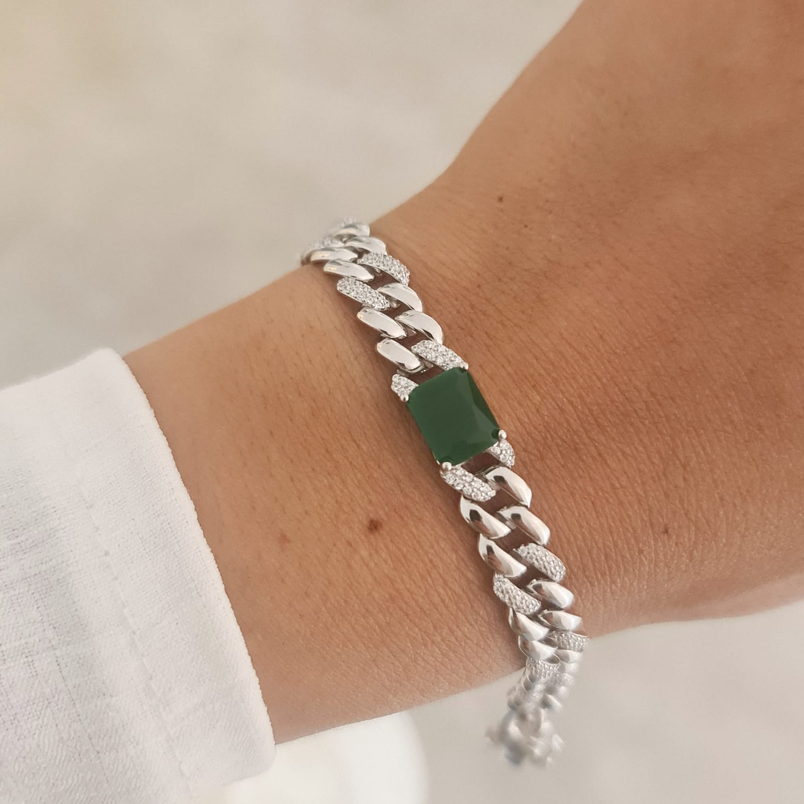צמיד גורמט משובץ אבן ירוקה