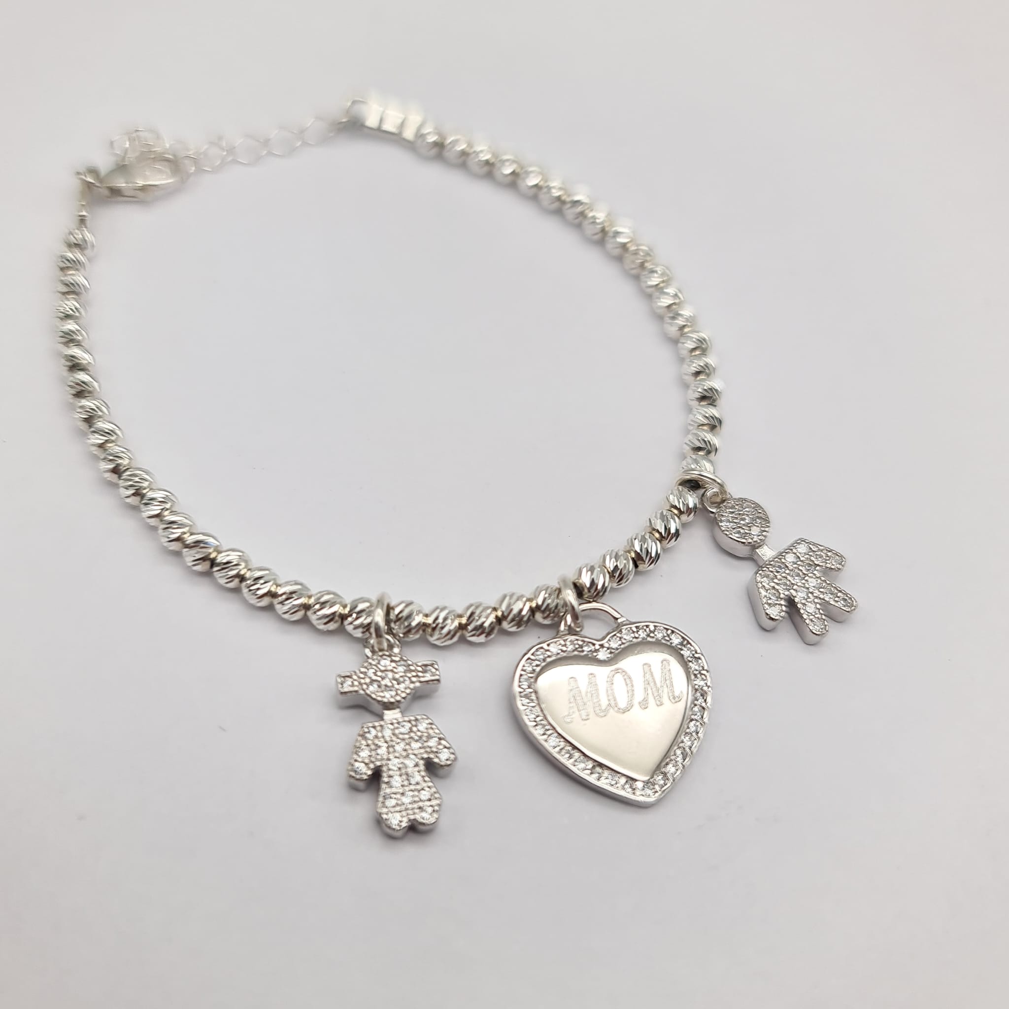 צמיד כדורי ליזר בתוספת לב בחריטה אישית