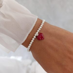 צמיד כדורים לב אדום
