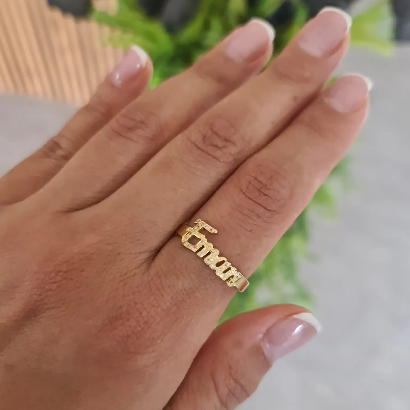 טבעת שם משובצת – עיצוב אישי ומרשים שמחבר את שמך עם ברק.