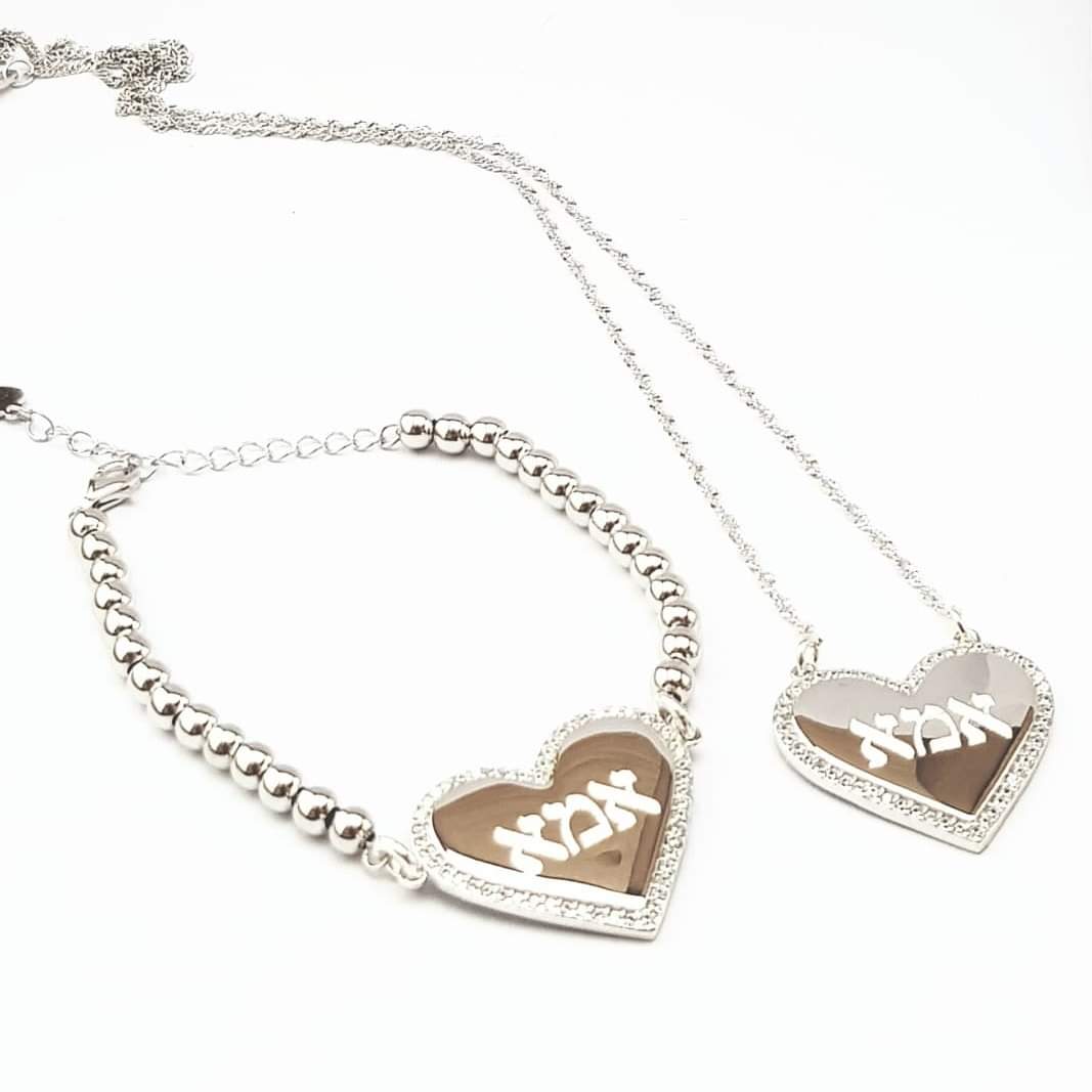 הסט כולל שרשרת לב  וצמיד כדורים