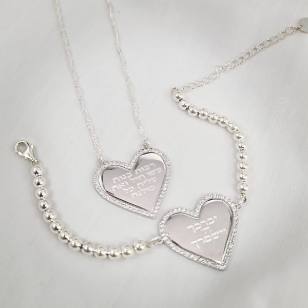 סט לב משובץ בחריטה אישית