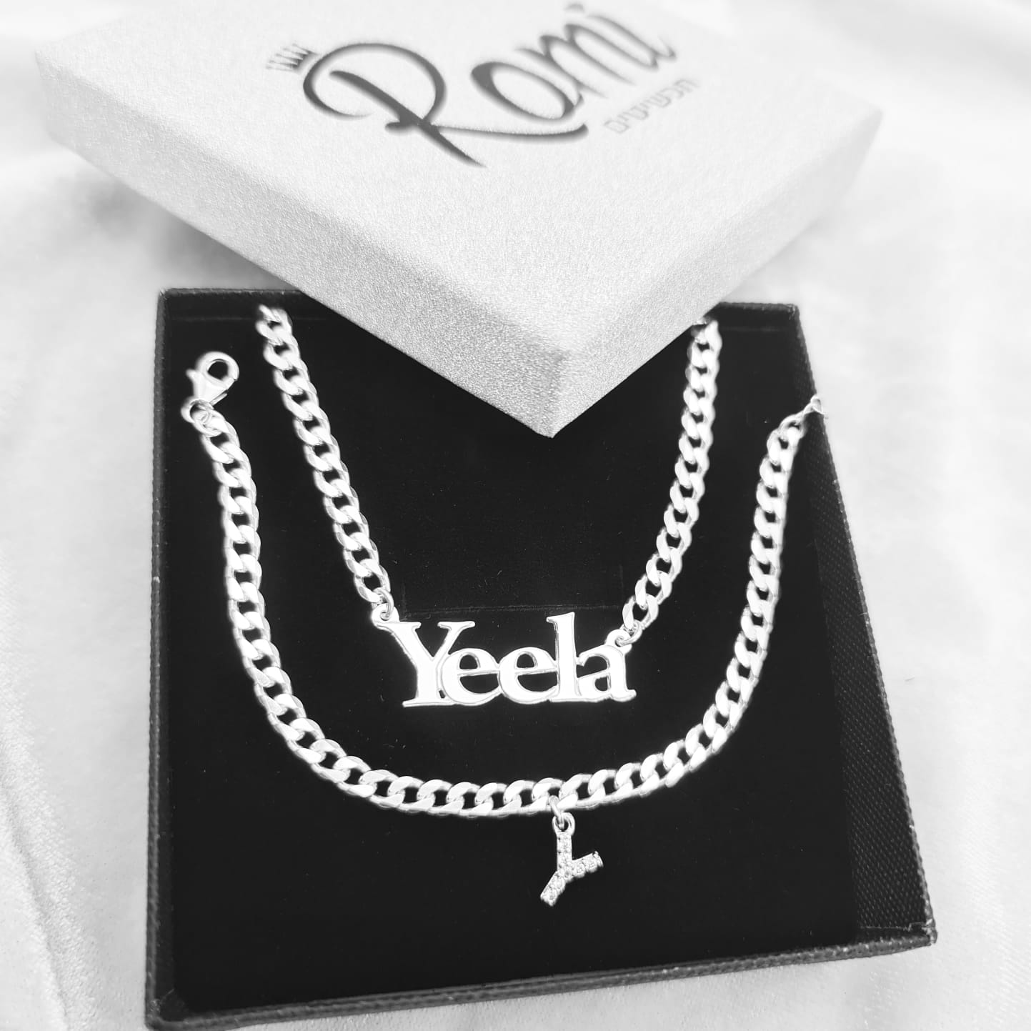 סט שם + אות משובצת כסף אמיתי!