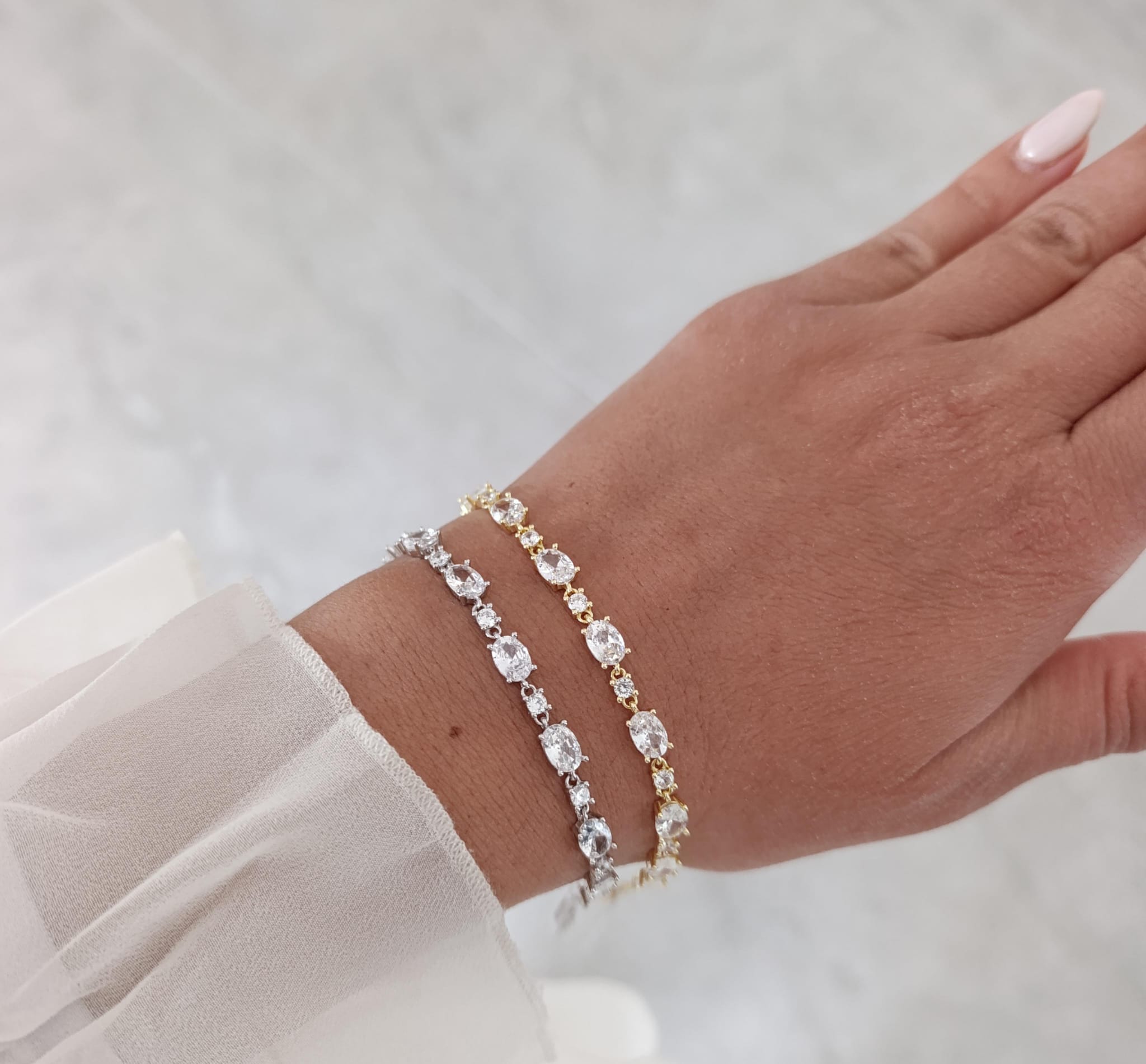 לאורך כל הצמיד יש שיבוץ של אבנים , אבני זרקוניה איכותיים