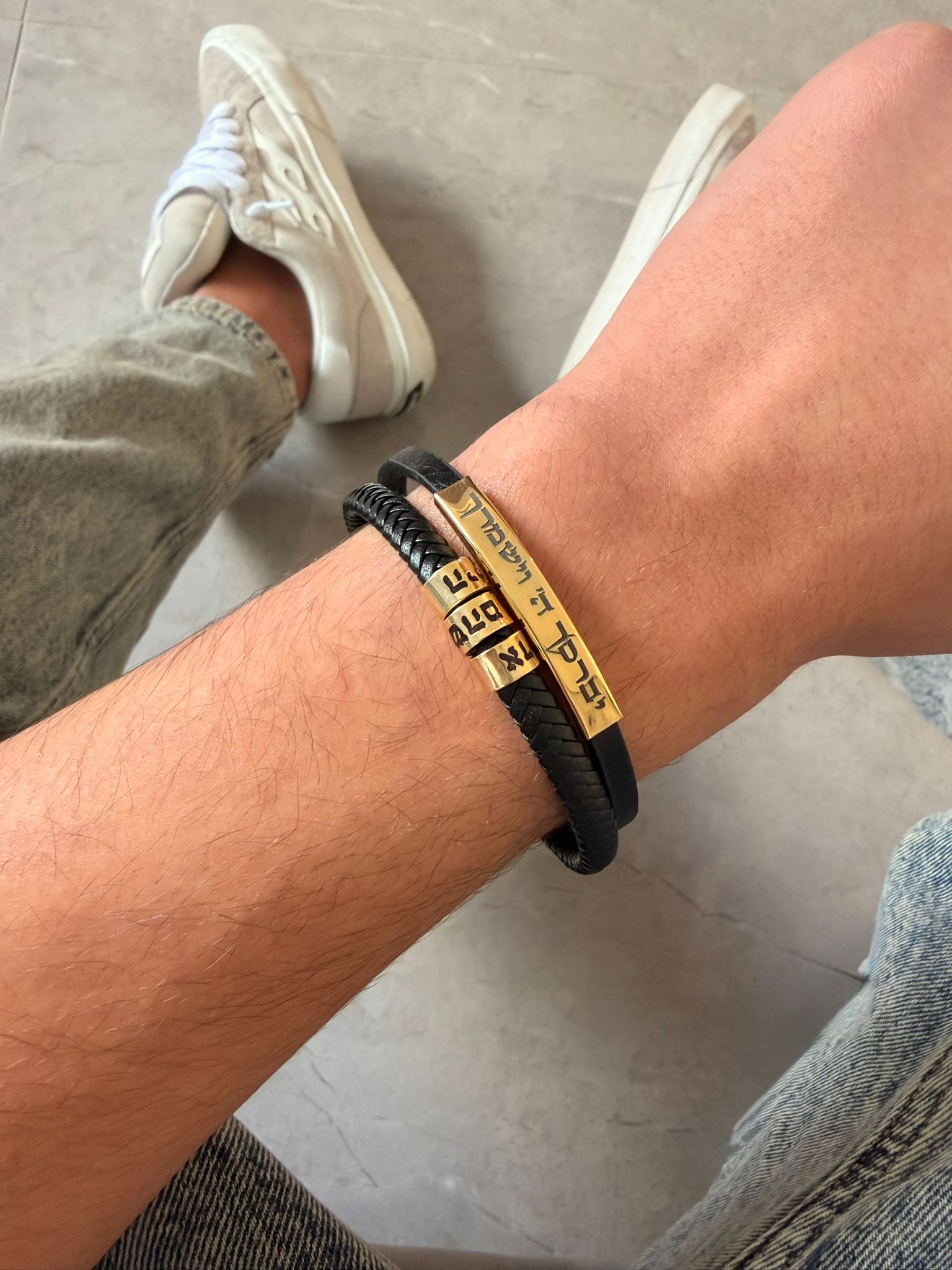 עמוד הביתצמידיםצמידי עור לגברים צמיד מעור דגם משולב צבע זהב