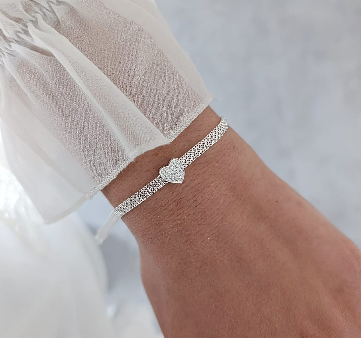 עמוד הביתצמידיםצמידי נשים משובצים צמיד רשת לב משובץ