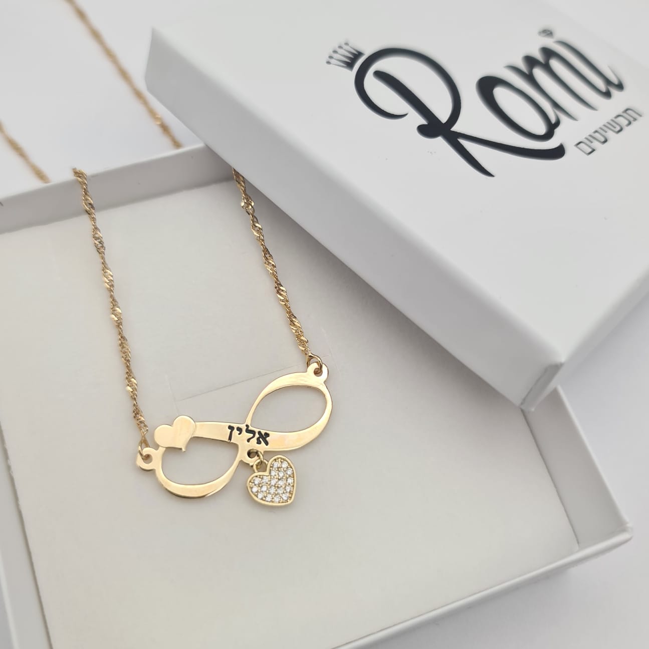 שרשרת אינפיניטי לב משובץ כולל שם