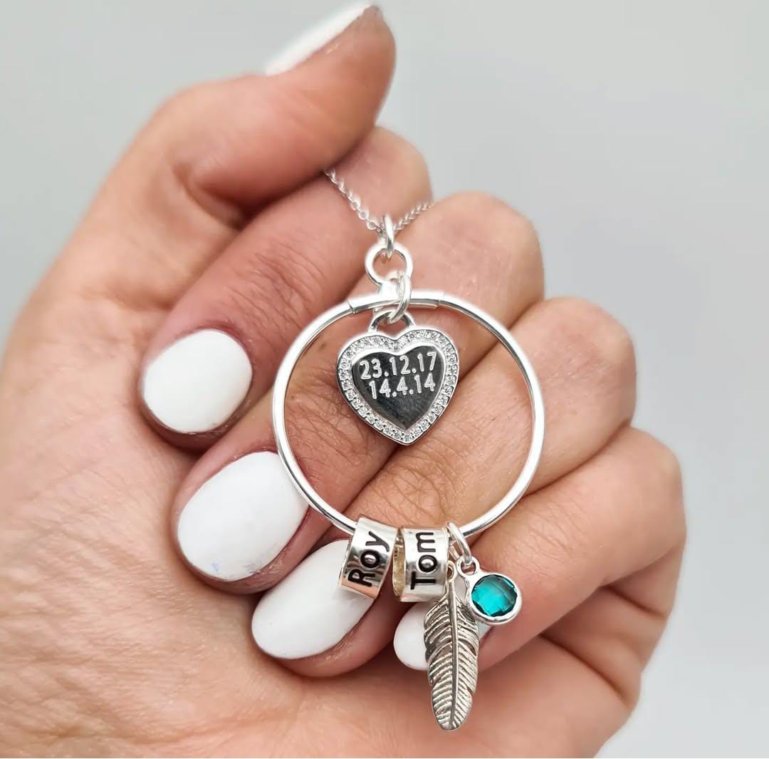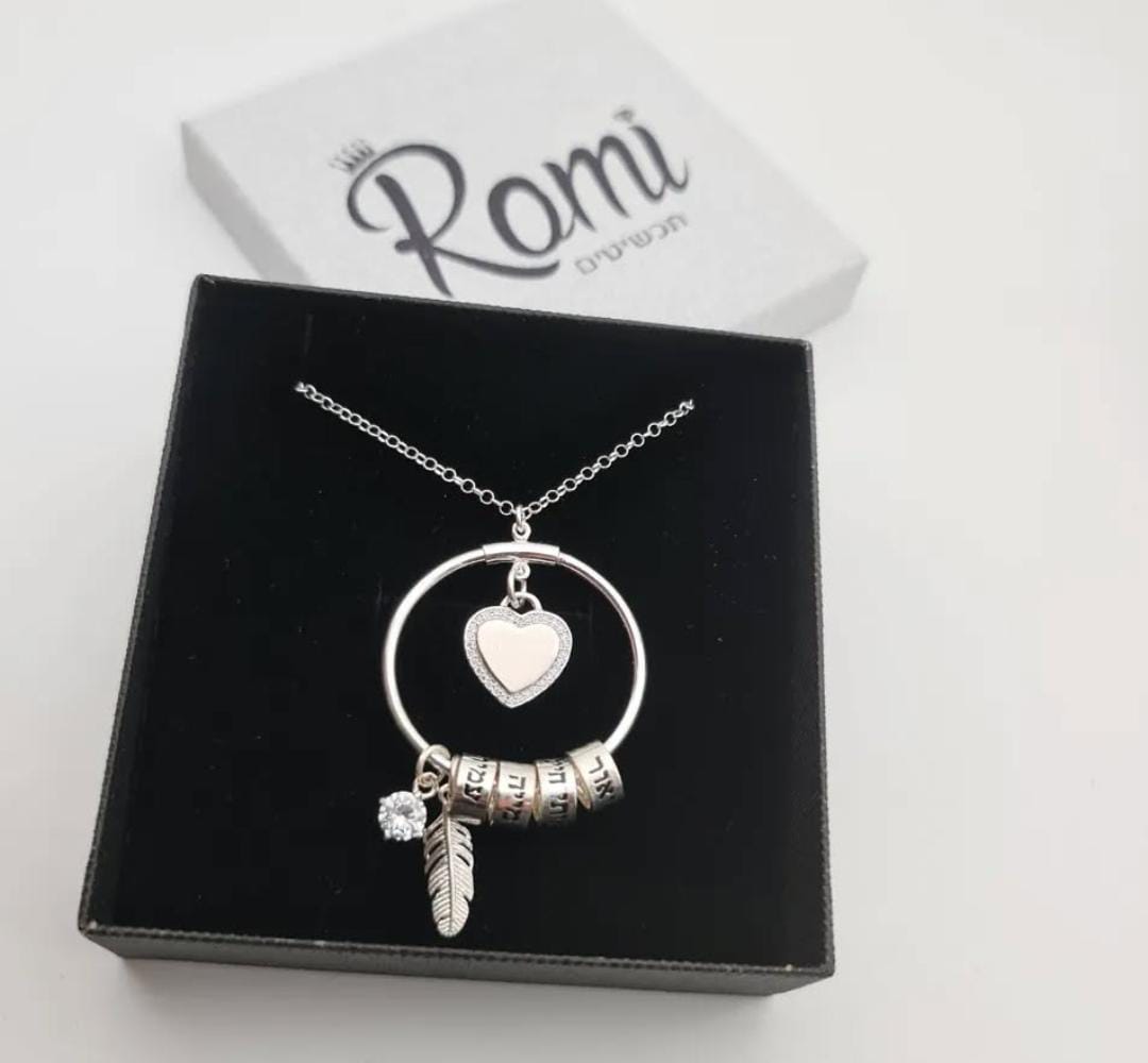 השרשרת מגיעה בשילוב תליונים : לב בחריטה אישית , נוצה , אבן בצבע שתבחרי : לבן , ורוד , טורקיז