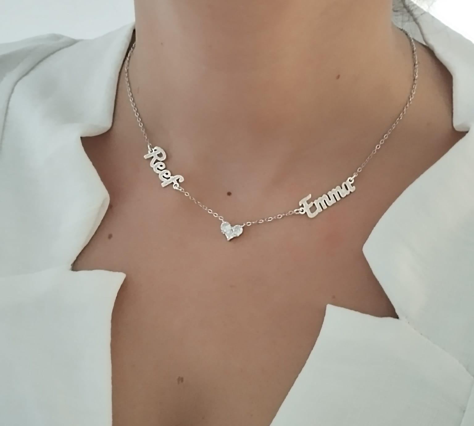 שרשרת 2 שמות משובצים כולל תליון לב משובץ
