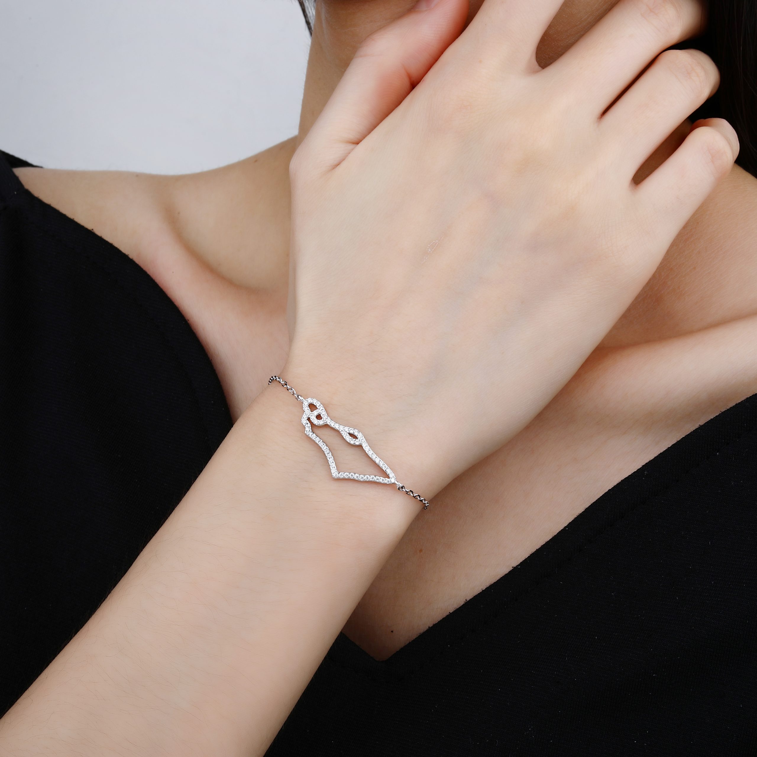 צמיד לב משובץ גדול